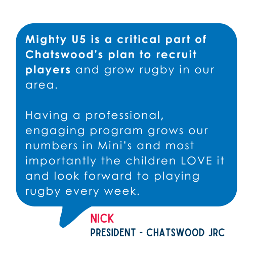 - Developing a successful U5 Rugby program to attract 4 and 5 year olds to play rugby at their local village club (Mighty U5 Tag Rugby).